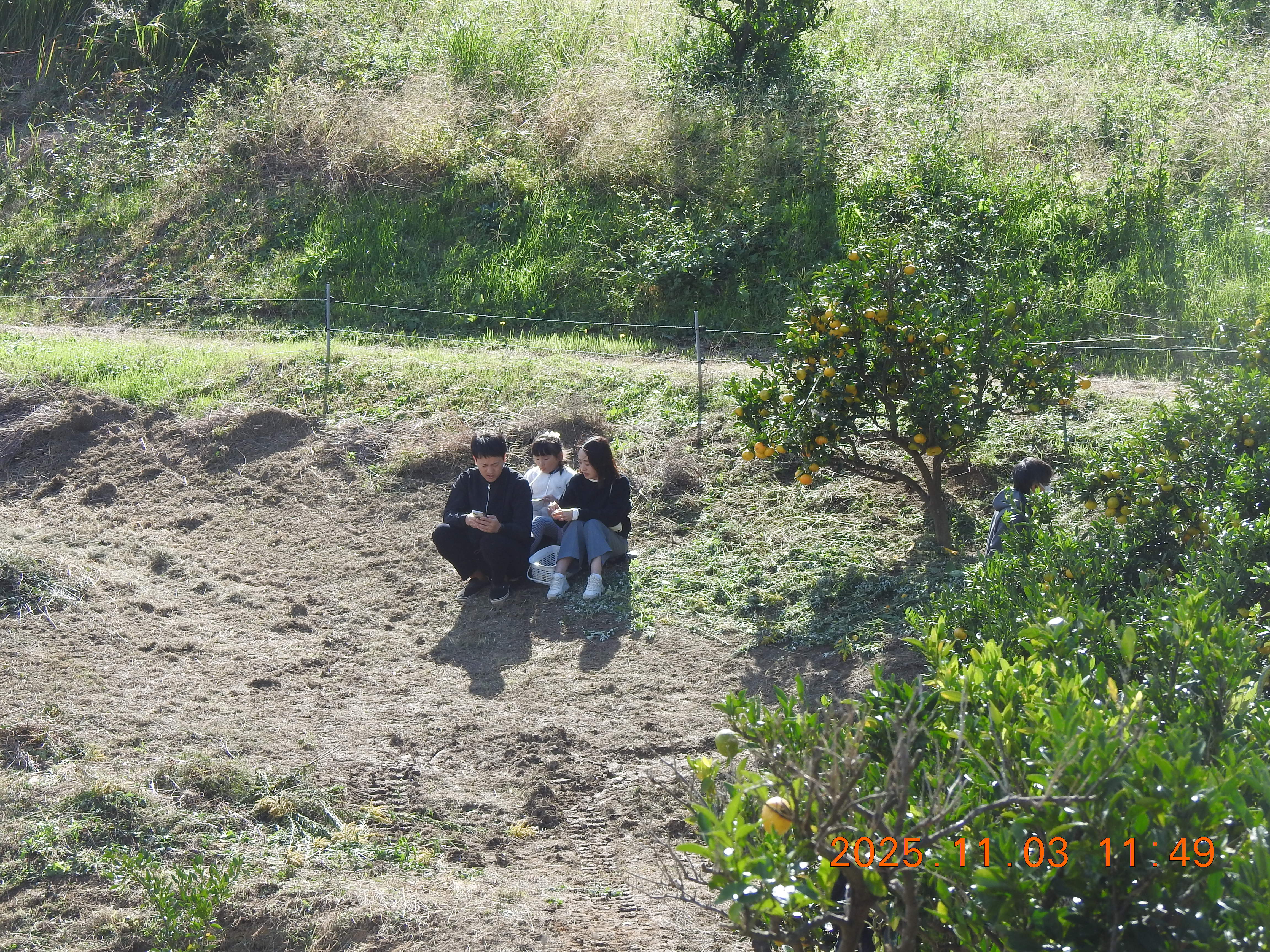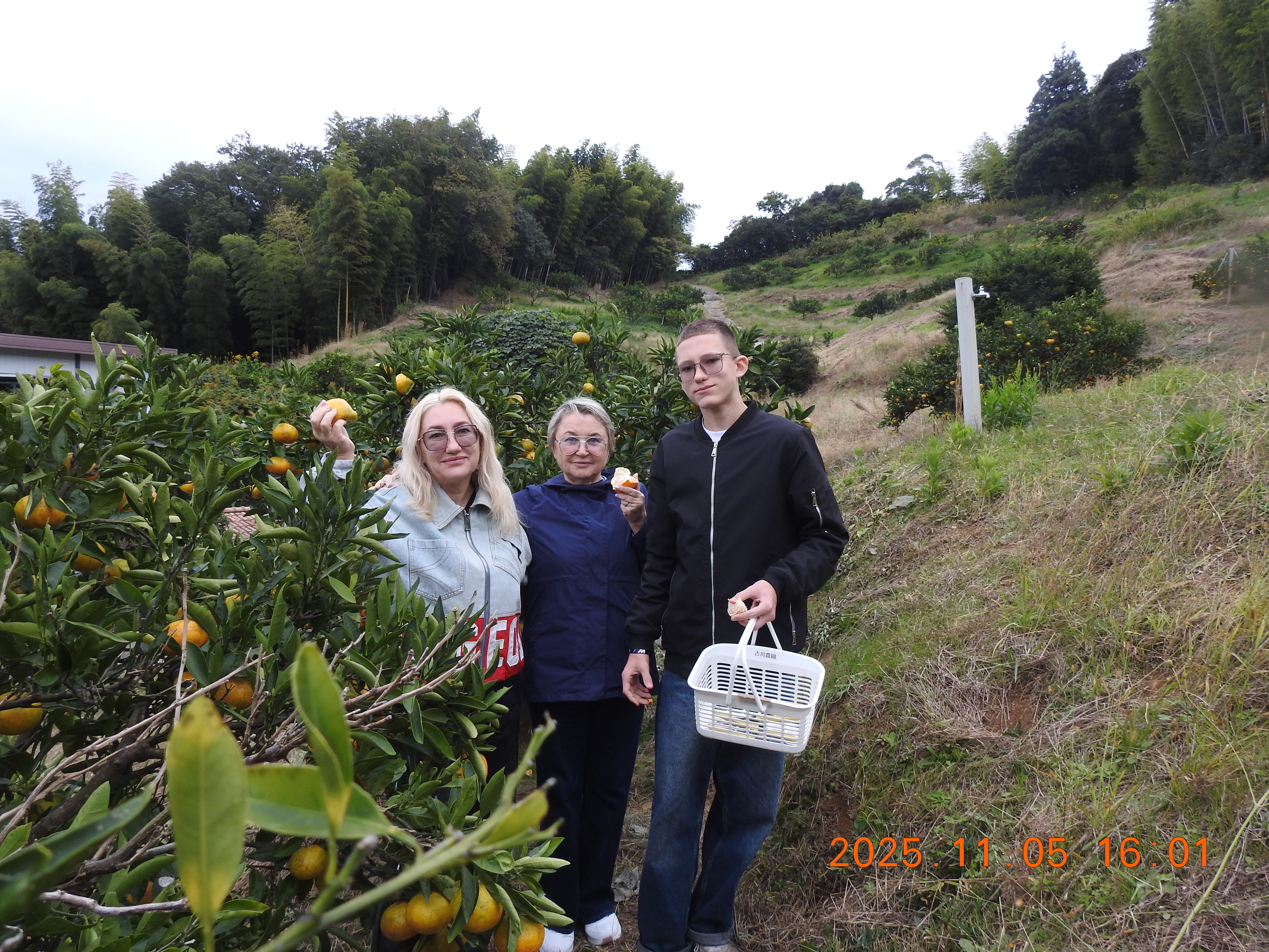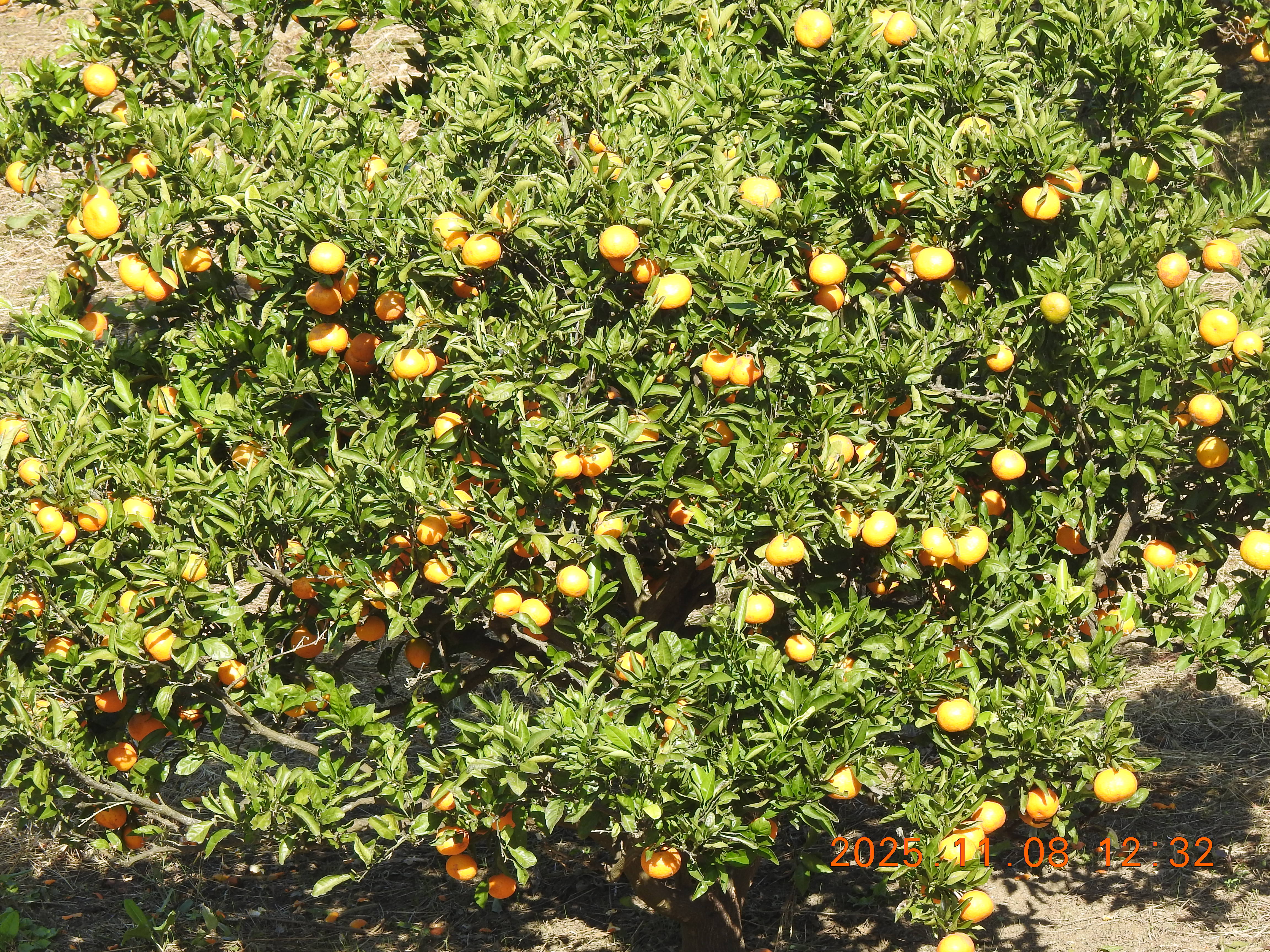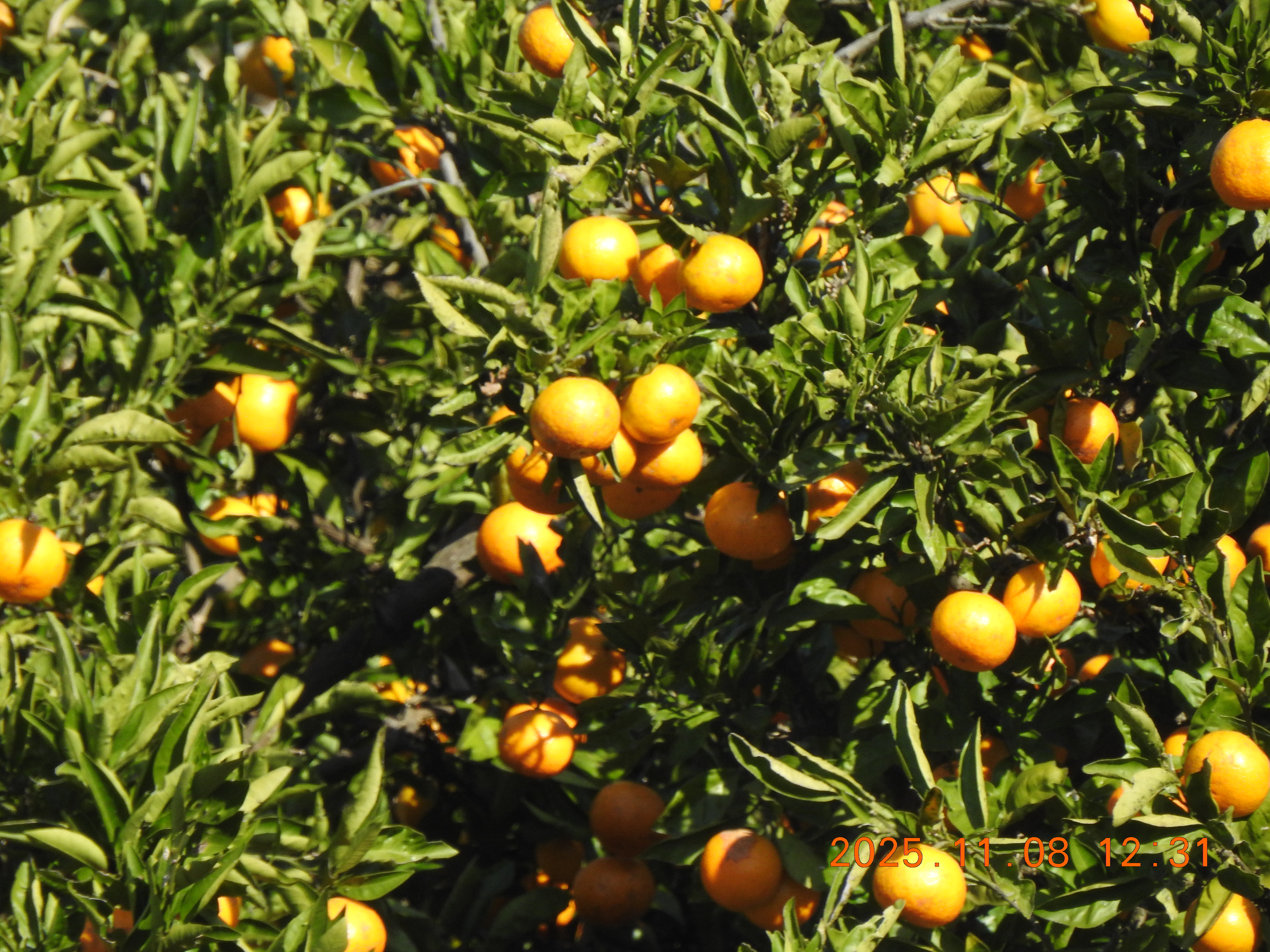 ♬☀ みかん狩(2) ☀♬ 2025-11-9更新 農園の 秋深まりて 柿熟し ミカン熟して 味覚本番 ご予約お受けしています。ご来園をお待ちしています。 さらに、レモン(今の時期は青レモン)、柚子(ゆず)の 直採り(お客様が選んで採果)販売しています